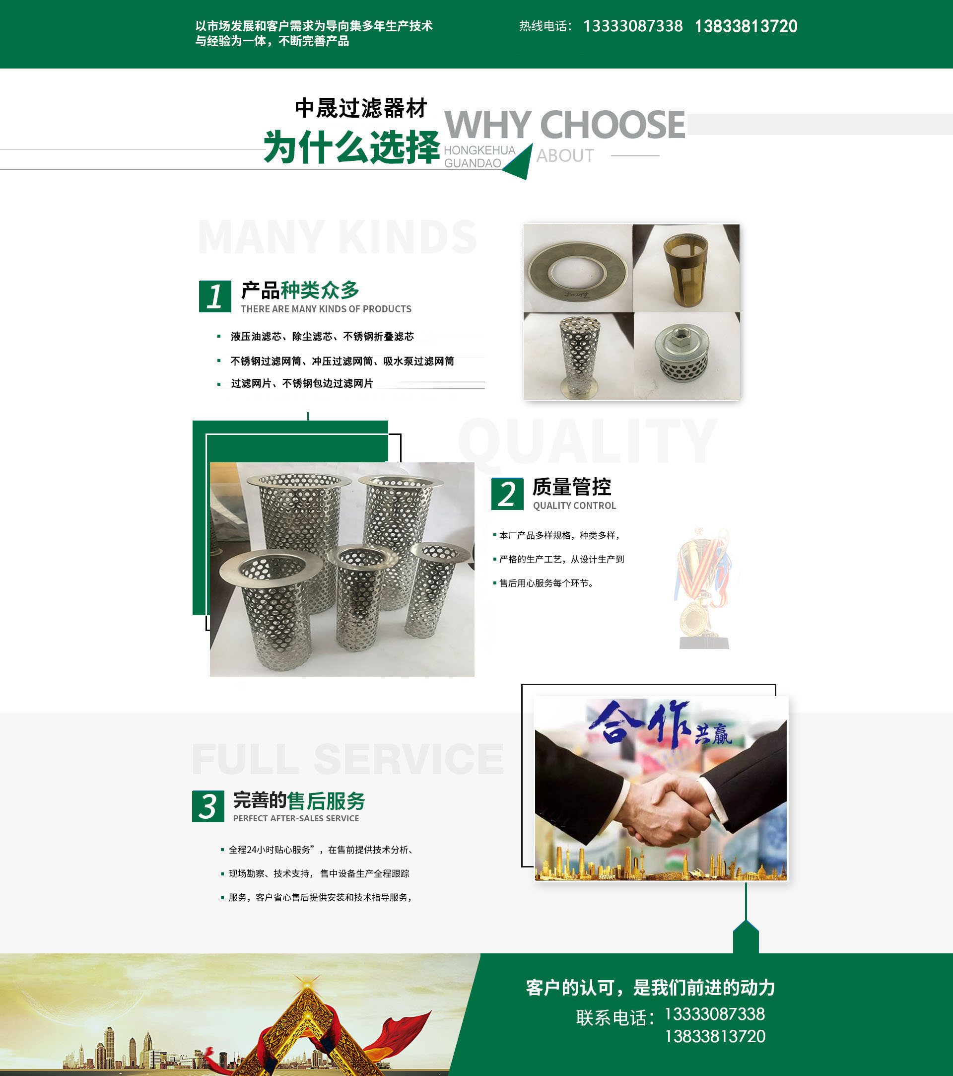 安平縣中晟過濾器材有限公司(原安平縣中晟過濾器材廠始建于2009年,于2023年升級成有限公司),坐落于有著絲網(wǎng)之鄉(xiāng)之稱的--河北安平!地處京津石交通線的樞紐地帶,距中國北方大港-天津港250公里,省會石家莊120公里,首都北京230公里。2010年底竣工通車的國家重點(diǎn)工程-大廣高速就在安平縣境內(nèi)穿過,交通十分便利。我廠設(shè)備先進(jìn),技術(shù)力量雄厚,具有高精密電腦數(shù)控機(jī)床、沖床、剪板機(jī)床、氬弧焊機(jī)、等離子焊機(jī)、縫焊機(jī)、滾焊機(jī)、點(diǎn)焊機(jī)、等離子切割機(jī)、螺旋中心管機(jī)等設(shè)備。我廠主要生產(chǎn)濾芯、過濾網(wǎng)筒、過濾網(wǎng)片、沖壓件四大系列產(chǎn)品,濾芯產(chǎn)品主要包括液壓油濾芯、水處理濾芯、金屬燒結(jié)濾芯、除塵濾芯、空調(diào)濾芯、燒噴濾芯、不銹鋼折疊濾芯等;過濾網(wǎng)筒產(chǎn)品包括:不銹鋼過濾網(wǎng)筒、篩網(wǎng)過濾網(wǎng)筒、圓孔網(wǎng)過濾網(wǎng)筒、沖壓過濾網(wǎng)···